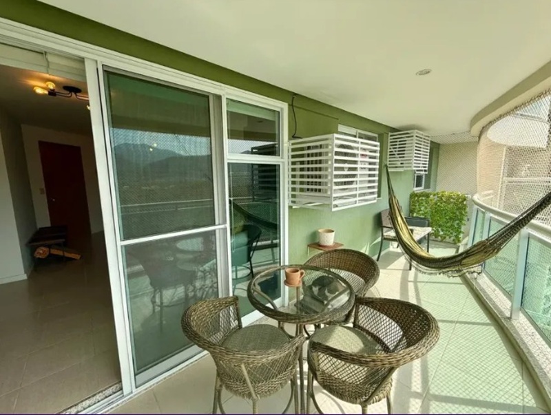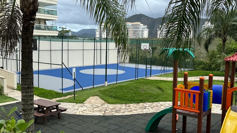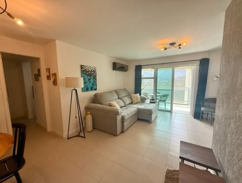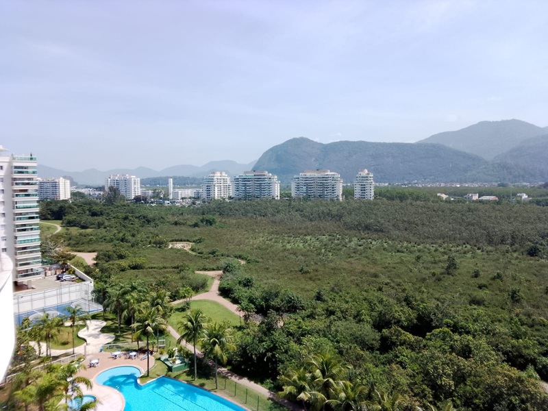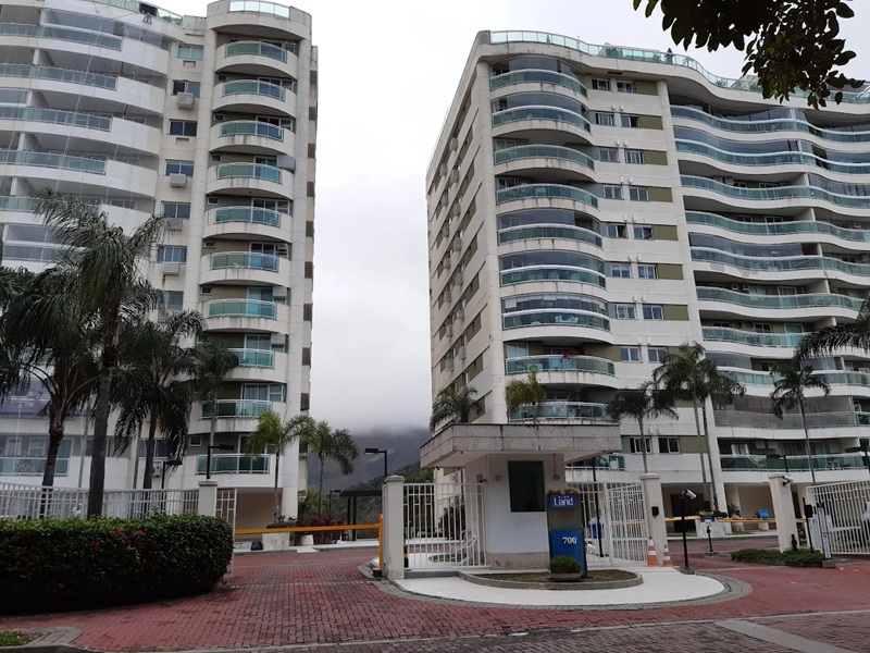 Barra da Tijuca – Condomínio Blue Land – Excelente apartamento em andar alto, fundos, indevassado, vista livre e deslumbante para as montanhas, medindo 79m² bem distribuídos composto por ótima varanda, ampla sala em dois ambientes, um quarto (suíte), cozinha espaçosa planejada, área de serviço e banheiro de serviço. Uma vaga de garagem na escritura. Condomínio resort com total infraestrutura e com direito ao Beach clube na praia. Direito a ônibus para balsa e metrô. Próximo a supermecado, shopping, estação de Brt Pedra de Itaúna e de fácil acesso aos bairros adjacentes.
