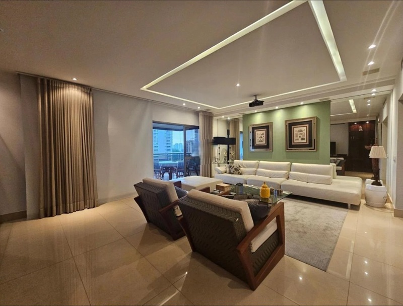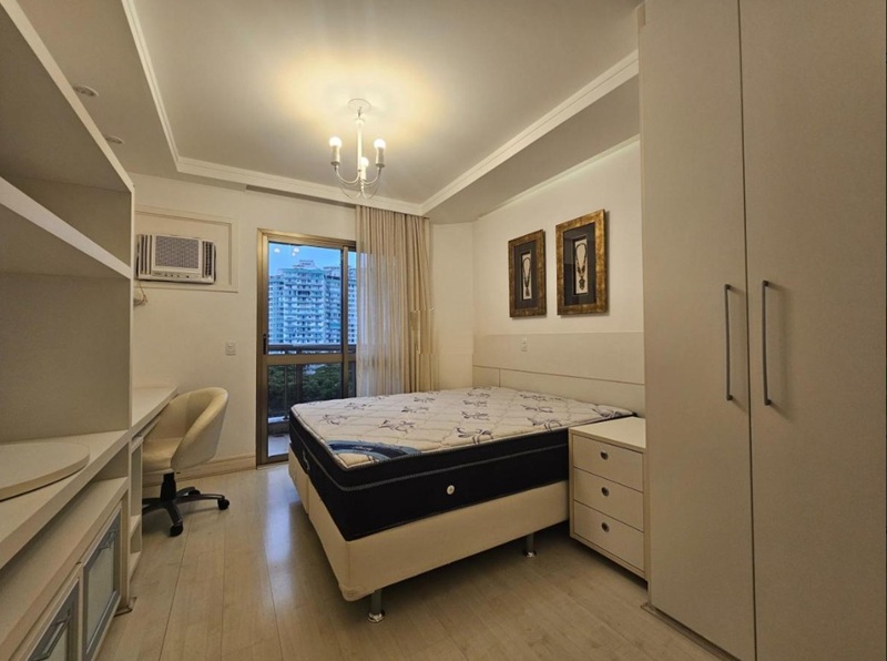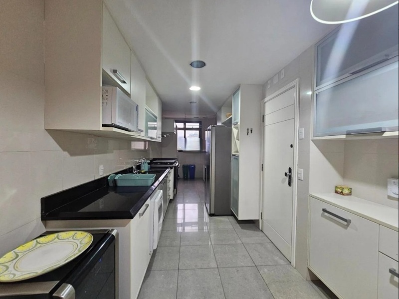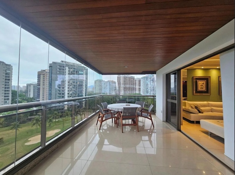 Barra da Tijuca – Condomínio Golden Green – Edifício Heron Lakes – Esplendoroso apartamento medindo 240m², com vista para a área aberta do campo de golfe, com excelente sensação de amplitude e privacidade. Composto por uma aconchegante varanda com cortina de vidro e toda em piso porcelanato, entrada imponente, sala de estar em dois ambientes, sala de jantar, lavabo, quatro suítes sendo uma com banheira de hidromassagem, ampla cozinha repleta de armários planejados, área de serviço e dependencia completa de empregada. Três vagas de garagem.