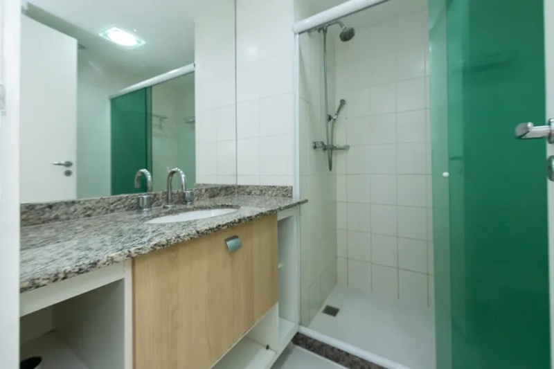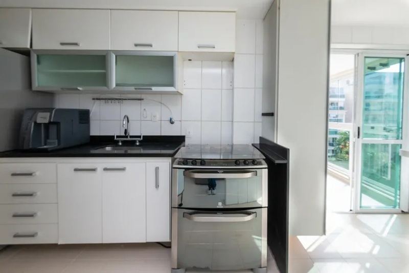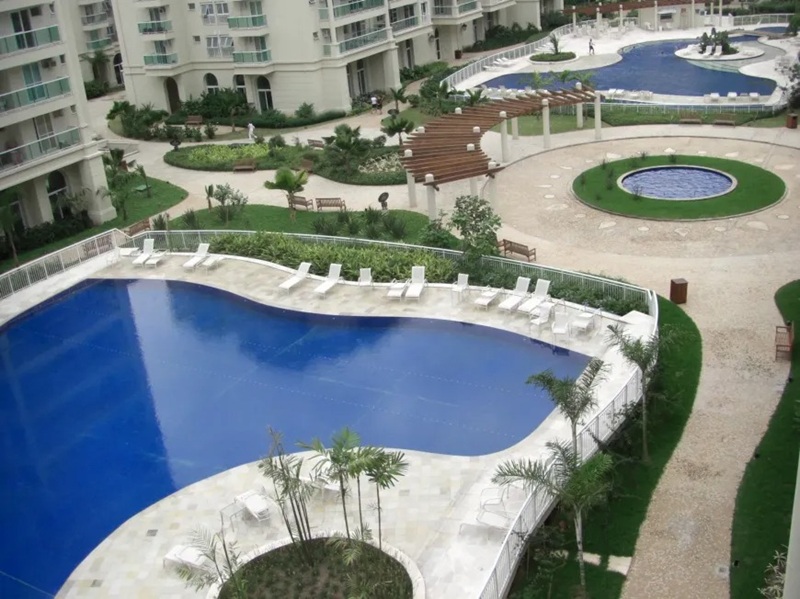 Barra da Tijuca – Le Park Resort Clube & Spa – Excelente apartamento residencial de alto padrão com 100 m², composto por varanda fechada com cortina de vidro, ampla sala toda em piso porcelanato e teto rebaixado em gesso com ar condicionado tipo split, lavabo, dois quartos com armários planejados sendo uma suíte, cozinha repleta de armários planejados e área de serviço. Duas vagas de garagem. Localização privilegiada na Barra da Tijuca: