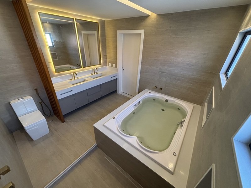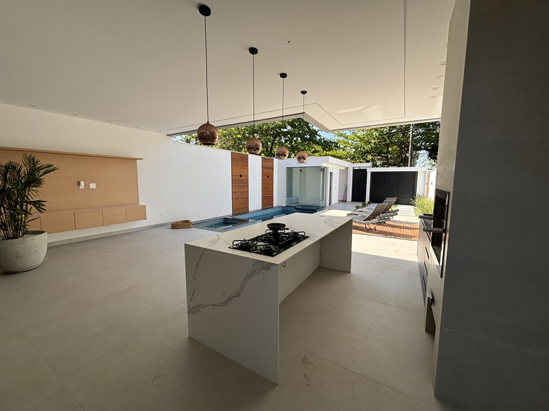 O primeiro pavimento conta com uma espetacular área gourmet com ilha e fogão de indução, churrasqueira, pia em granito preto com armários acoplados e aéreos, além de um amplo painel. Destaque para a piscina com hidromassagem e sauna embutida com acesso direto à área externa. Amplo salão integrado em até três ambientes, dois banheiros, cozinha em conceito aberto com ilha, fogão de indução, forno elétrico e micro-ondas embutidos, bancada em mármore com armários planejados, lavanderia e dependência completa de serviço.