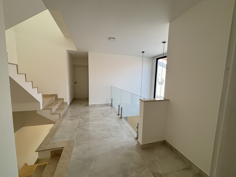 No segundo pavimento, um charmoso hall distribui três suítes, sendo a master com dois banheiros, hidromassagem e uma ampla varanda com vista para a piscina e para a rua.
