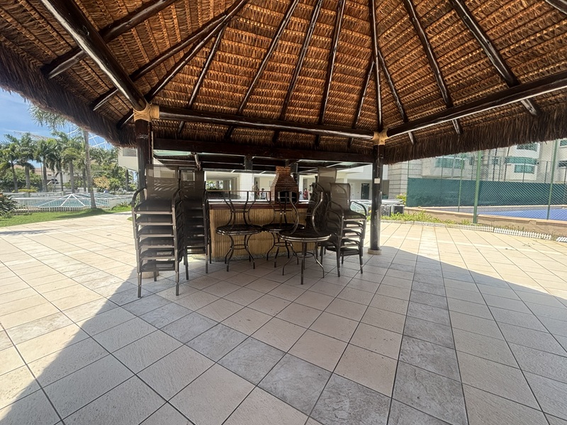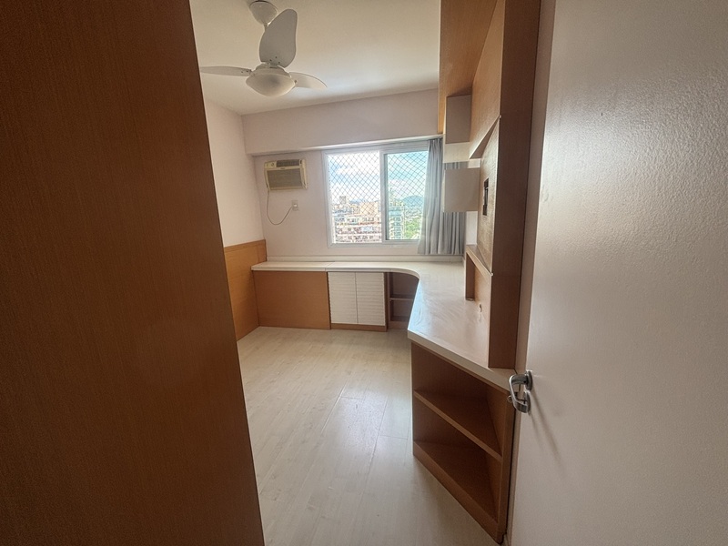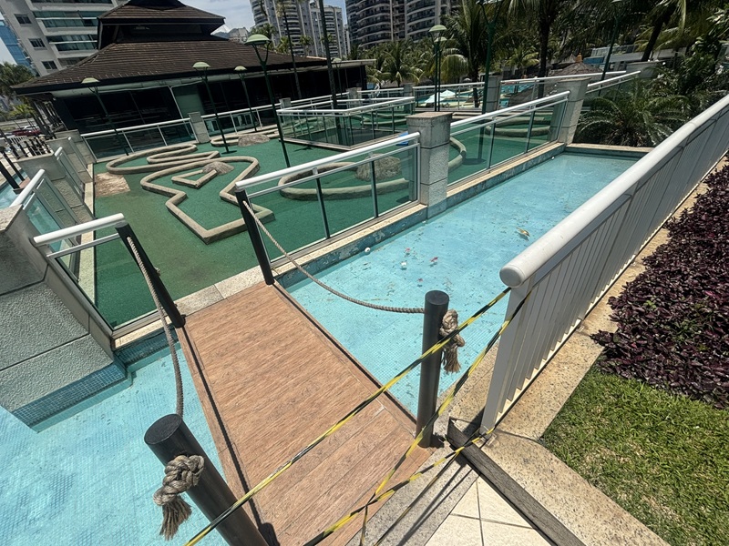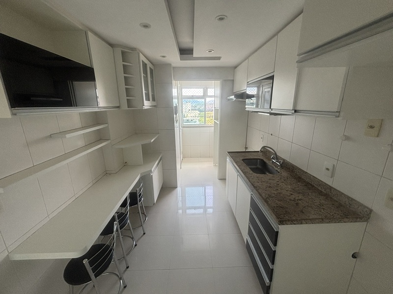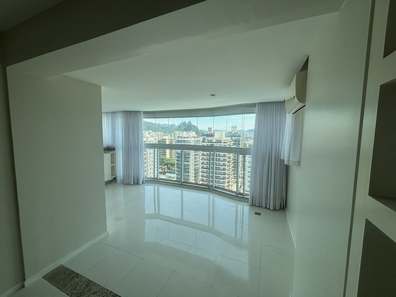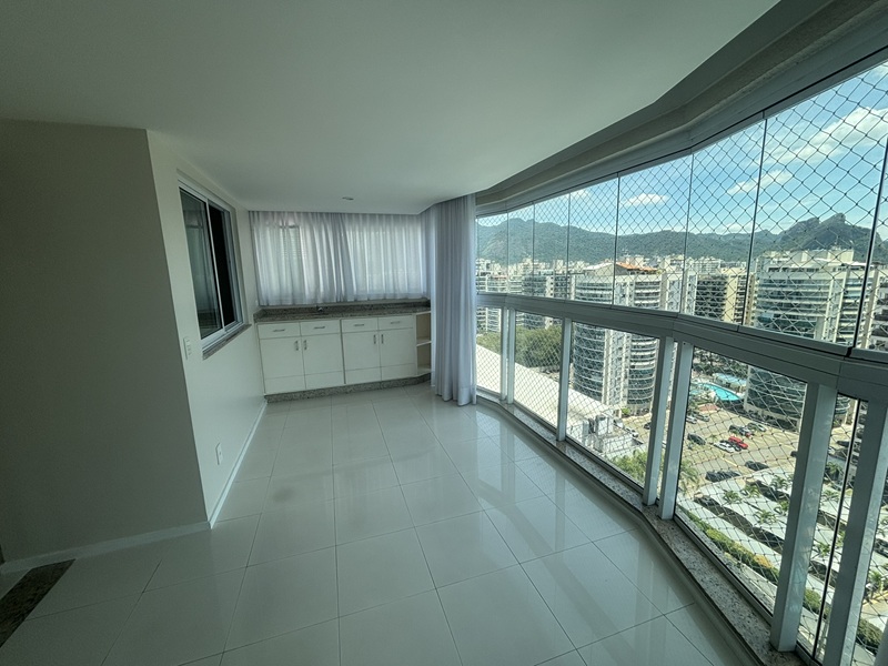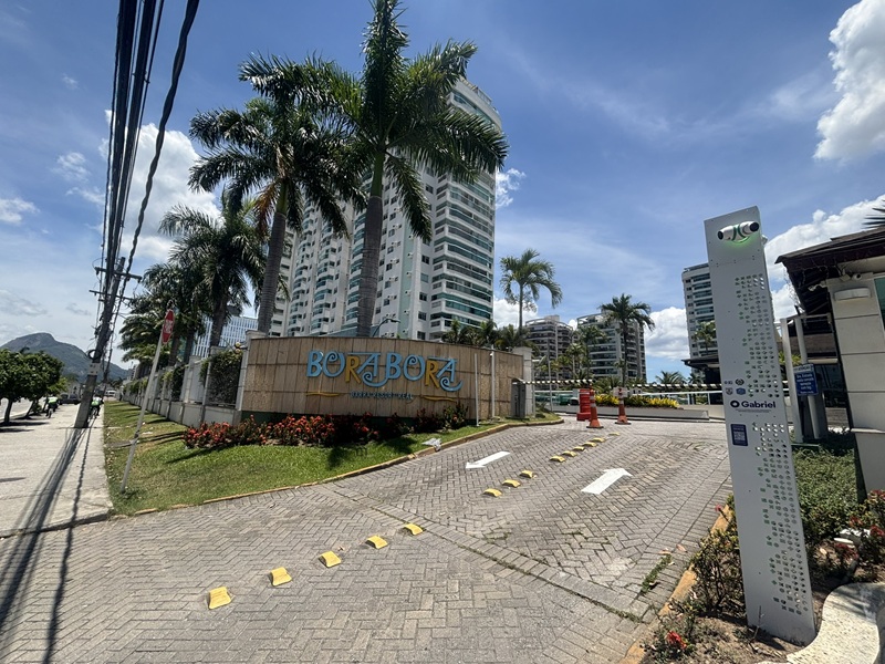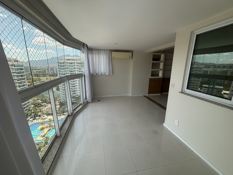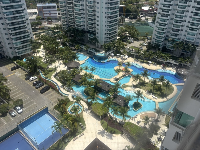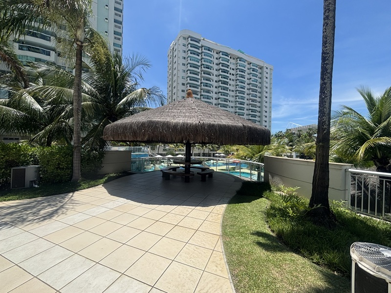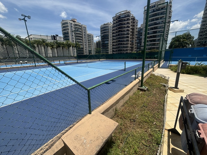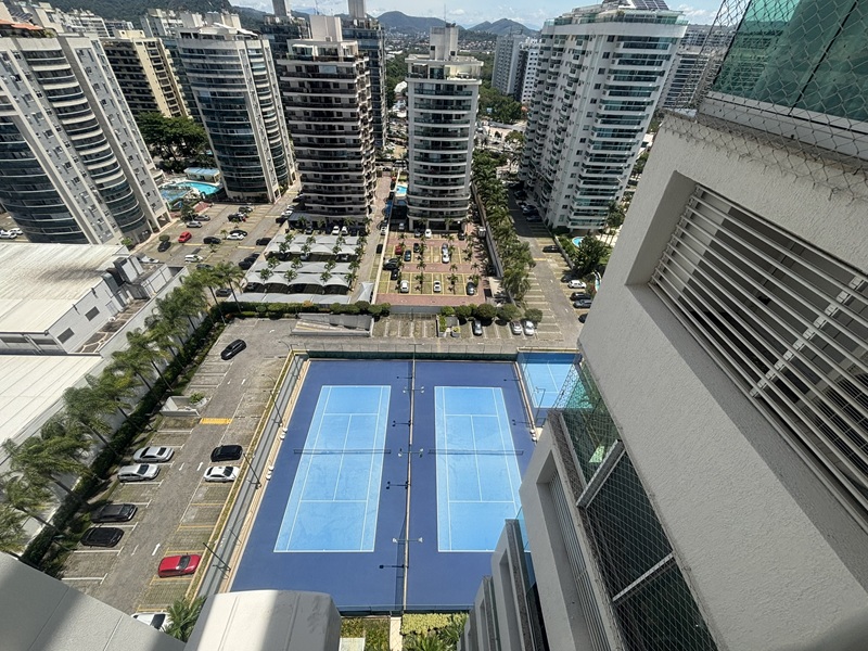 Barra Olímpica – Condomínio Bora Bora Barra Resort – Magnífico apartamento andar alto, claro e com vista para a área das piscinas e quadras de tênis. Composto por uma excelente varanda com pia de apoio e armário, fechada com cortina de vidro e toda em piso porcelanato e ar condicionado tipo split, sala ampliada com teto rebaixado em gesso e iluminação embutida e em led, banheiro social com armário e box bindex, original três quartos sendo uma suíte com pequeno clopset, (um dos quartos foi aberto para ampliar a sala podendo voltar ao original facilmente), cozinha azulejada até o teto totalmente planejada, área de serviço e banheiro social transformado em uma despensa. Duas vagas cobertas e box (depósito privativo) Condomínio completo com total infraestura. Próximo a mercado, shopping, Brt e de fácil acesso aos bairros adjacentes.