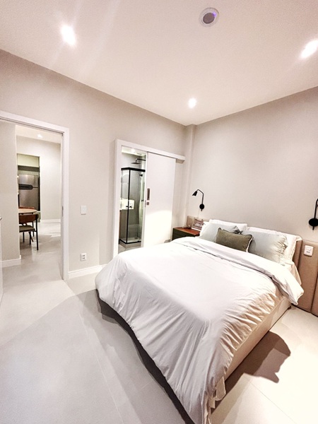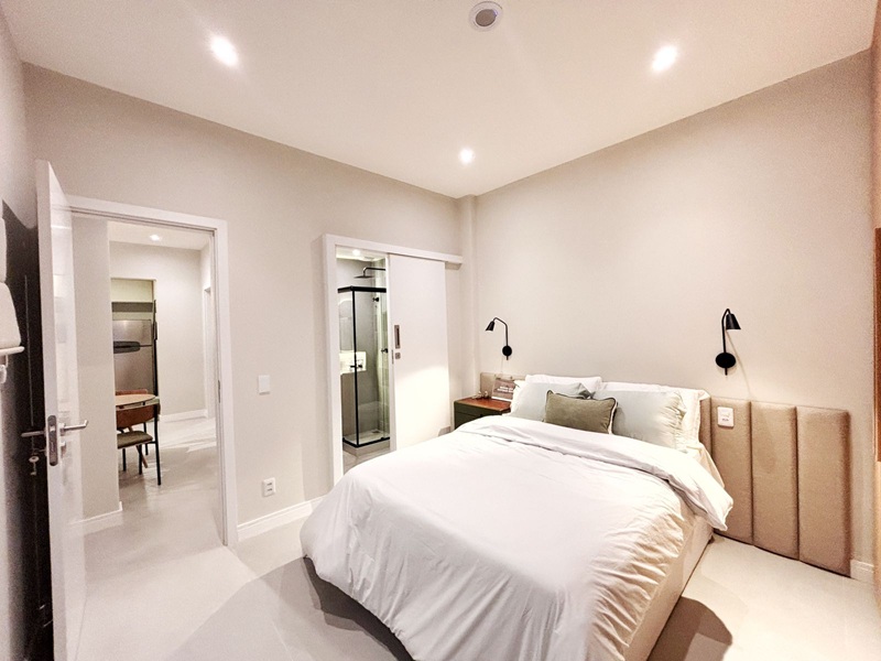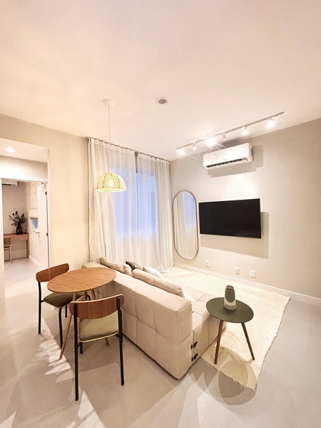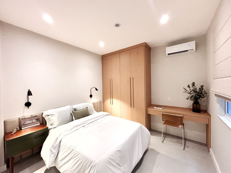 Ipanema – Maravilhoso apartamento todo reformado e modernizado, quadra da praia, no ponto mais valorizado de Ipanema e ao lado do Country Club.Fundos, silencioso, totalmente privativo e medindo 60 m². Composto por sala climatizada com ar condicionado tipo split, dois quartos sendo uma suíte climatizada, banheiro social com box blindex e armário, cozinha integrada a sala com armários planejados, forno e cooktop. O apartamento conta com marcenaria sob medida em todos os ambientes, Porcelanato 90×90, três aparelhos de ar-condicionado split na sala e quartos (18.000 BTUs, 12.000 BTUs e 9.000 BTUs, automação de luzes e ar-condicionado via Alexa, Alexa embutida no teto da sala e quarto (Echo Pop) e fechadura digital. Mobiliário incluído