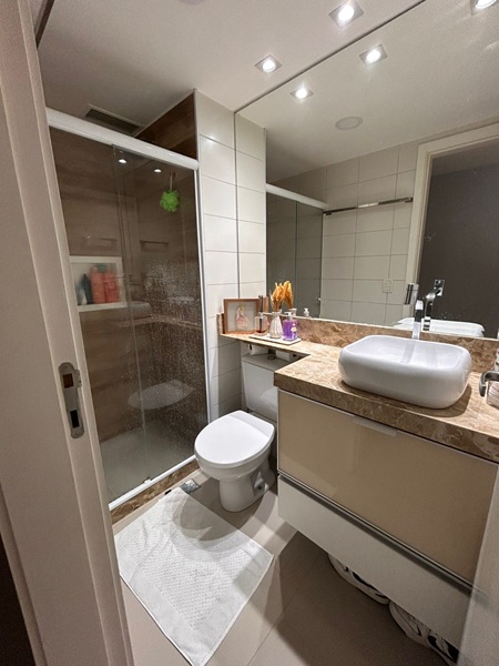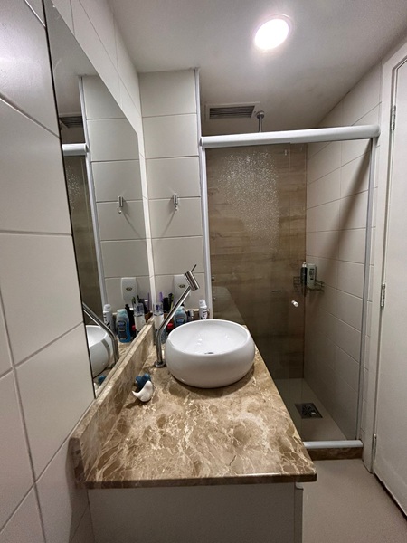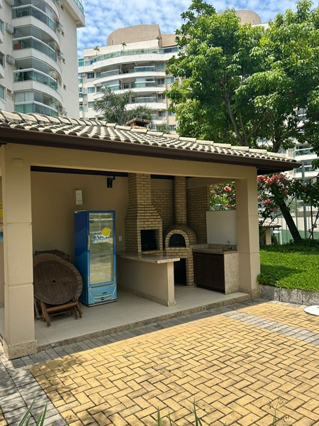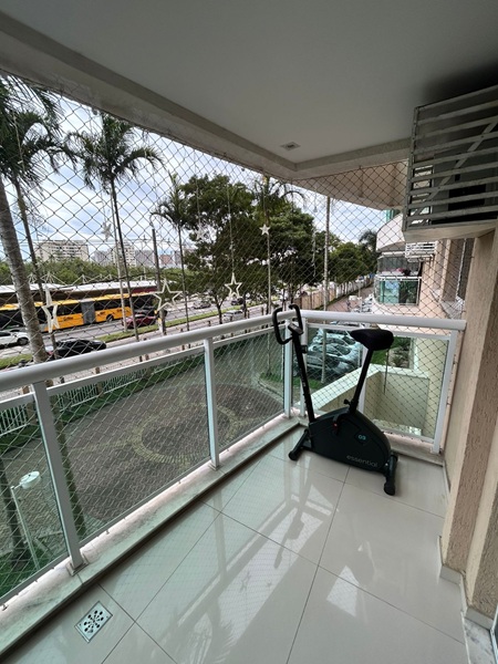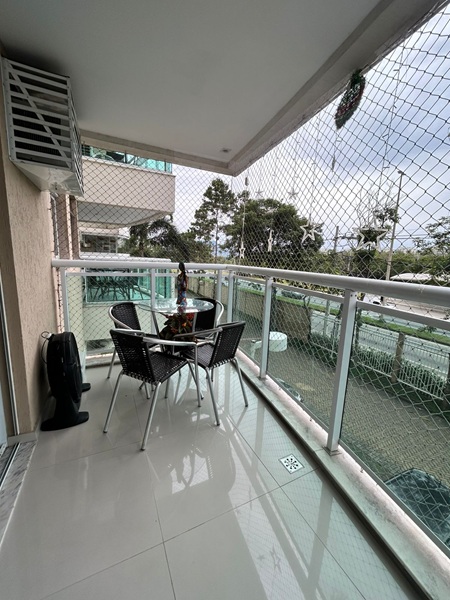 Recreio dos Bandeirantes – Condomínio Barra Sunday – Excelente apartamento em andar baixo, frente, sol da manhã, vista para rua, medidndo 65m². Composto por ótima varanda com tela de proteção, sala toda em piso porcelanto em dois ambientes, dois quartos sendo uma suíte, banheiro social, cozinha americana com armários planejados e área de serviço. Uma vaga de garagem. Condomínio com total infraestutura.