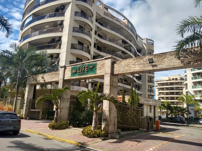Recreio dos Bandeirantes – Condomínio Residencial Life – Excelente apartamento medindo 89m², frente, composto por ampla varanda, sala em dois ambientes, três quartos sendo uma suíte com varanda privativa, banheiro social com box blindex e armário, cozinha com passa-prato azulejada até o teto e com armários planejados, área de serviço e banheiro de seviço. Apartamento desocupado com facilidade de mudança. Duas vagas de garagem e condomínio com total infraestrutura como piscina com raias olímpicas e espaço infantil, sauna seca e a vapor, três banheiras de hidromasagem, academia, duas quadras poliesportivas, duas quadras de tênis, salão gourmet, sala de cinema, cinco churrasqueiras, amplo salão de festas. Situado próximo a escolas, Shopping Vertice Mall e comercio em geral. Oferece um serviço de transporte aos condôminos em torno do Recreio dos Bandeirantes e Barra até o Jardim Oceânico.